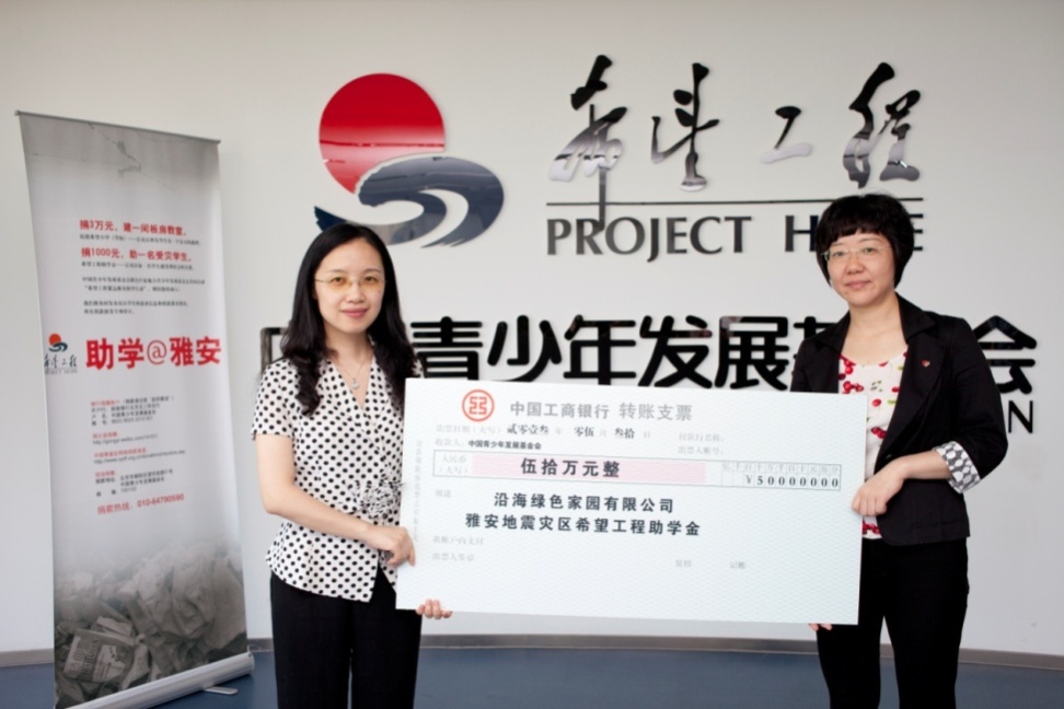 災(zāi)難無情人有情。5月30日上午,沿海綠色家園有限公司(以下簡(jiǎn)稱沿海集團(tuán))品牌總監(jiān)童新華女士在北京中國(guó)青少年發(fā)展基金會(huì)總部將沿海集團(tuán)以及全體沿海人共同捐贈(zèng)的50萬元善款親手交到姚文副秘書長(zhǎng)的手中。據(jù)悉,此次捐款將通過“希望工程緊急救災(zāi)助學(xué)行動(dòng)”用于資助雅安災(zāi)區(qū)家庭困難的500名學(xué)生,幫助他們順利完成學(xué)業(yè)。