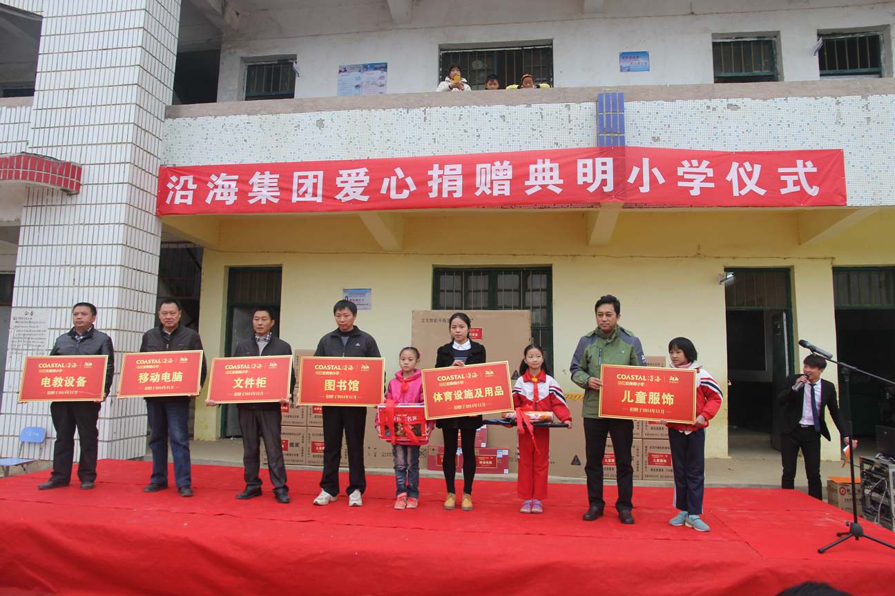在簡單而莊重的捐贈儀式上,沿海綠色家園集團戰(zhàn)略管理部總經(jīng)理陳昕代表沿海集團將上述捐贈物品移交給師生代表。他在發(fā)言中向當?shù)卣?、學校老師和媒體嘉賓介紹了沿海綠色家園集團的情況及其歷年來在公益慈善方面的作為。