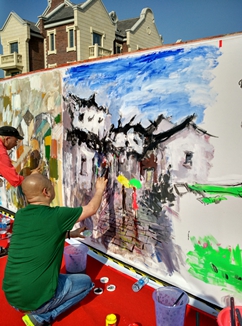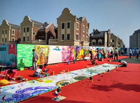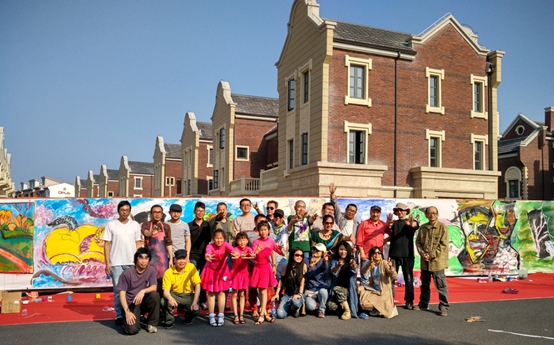 “百米畫卷”活動現場家長和孩子同繪畫卷,其樂無窮。參加活動的管女士說,她們一起用筆勾勒了“小城堡”,然后讓孩子涂上水彩顏料,小孩子做得津津有味,動手創作的能力也提高了。現場參與繪畫的家長紛紛表示,這次參加水都南岸的活動,讓自己的“五一”小長假有了別樣的家庭之樂。現場作畫的中外50余位藝術家更是激情四溢,他們紛紛用手中的畫筆表達對水都南岸的感情。眾多畫家表示:“之所以選擇入住水都南岸,就是看中這里天然的環境和良好的創作空間……”他們共同表示生活在水都南岸,很開心。