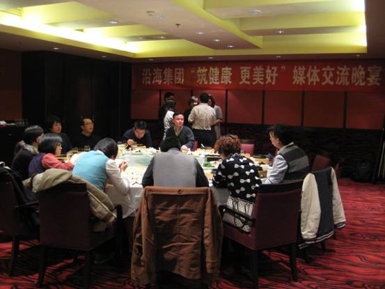 2011年12月15日,沿海集團“筑健康 更美好”媒體交流晚宴于北京長安俱樂部舉行,沿海地產(chǎn)總裁王軍、華北地區(qū)總經(jīng)理王海域等代表沿海邀請來自中國房地產(chǎn)報、中國消費者報、中國經(jīng)營報、新京報、搜狐、新浪、搜房等二十余家媒體出席本次交流晚宴。